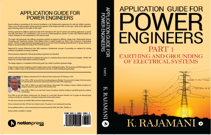 He has published extensively in leading international and national journals, including IEEE, IEE, IFAC, and IEEMA. IEEMA has also published a monograph compiling his articles. His book, Application Guide for Power Engineers – Part 1: Earthing & Grounding of Electrical Systems, was published in December 2018 (Click the Cover Page image on right for Amazon India link. For International Amazon link click here).